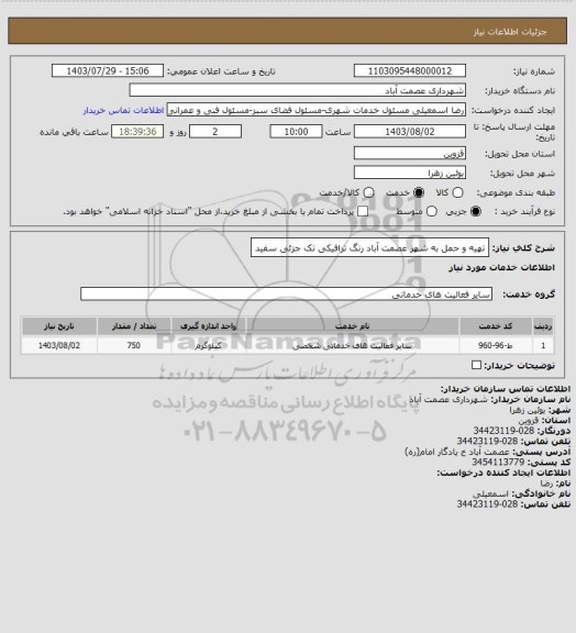 شرح کلی نیاز: تهیه و حمل به شهر عصمت آباد رنگ ترافیکی تک جزئی سفید