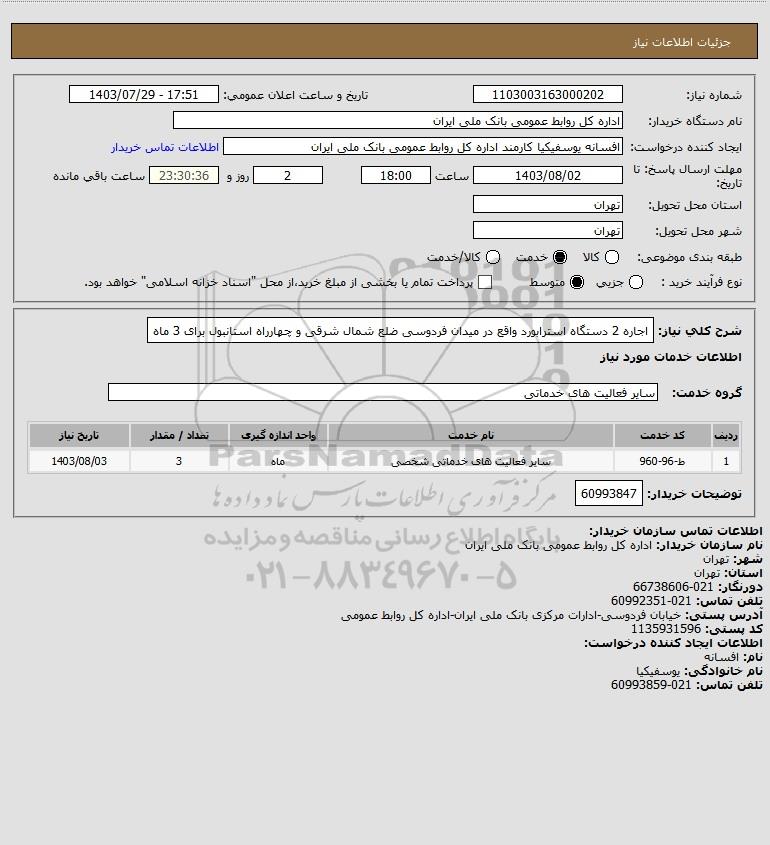 نام دستگاه خریدار:اداره کل روابط عمومی بانک ملی ایران