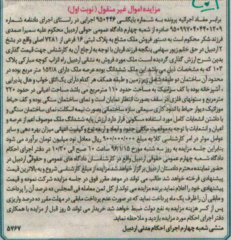مزایده : فروش ملک دارای 152/8 مترمربع شماره 950446