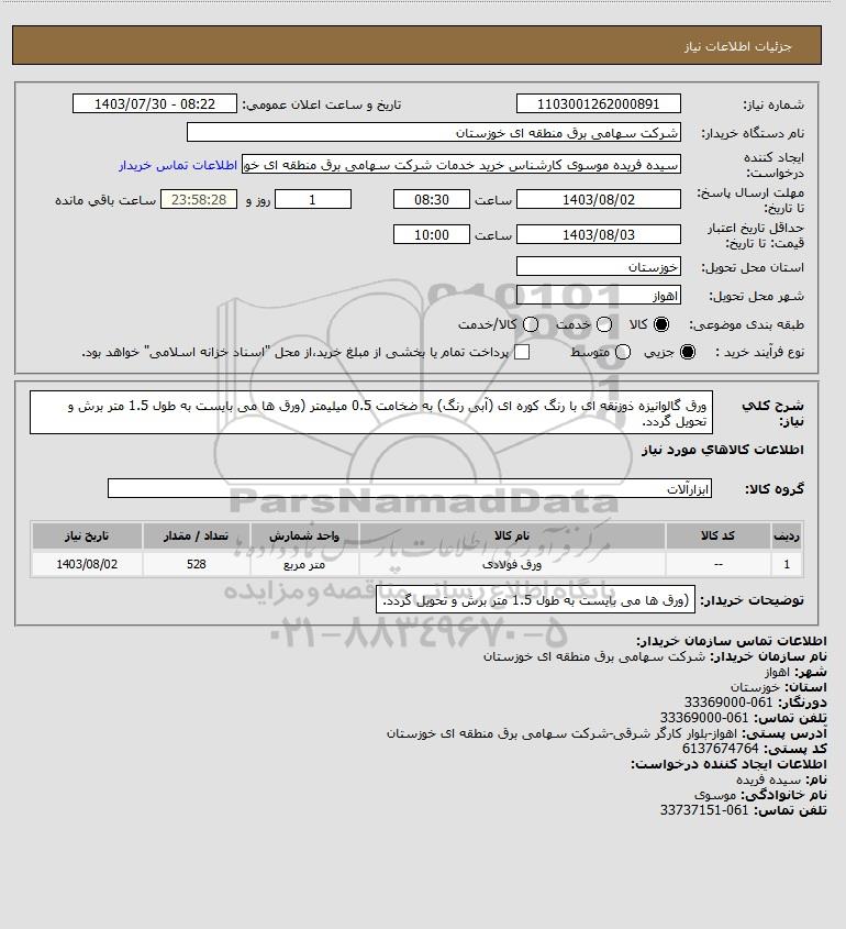 نام دستگاه خریدار:شرکت سهامی برق منطقه ای خوزستان