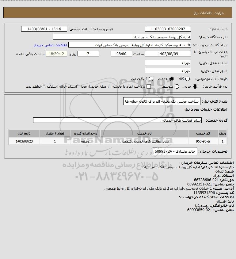 نام سازمان خریدار: اداره کل روابط عمومی بانک ملی ایران