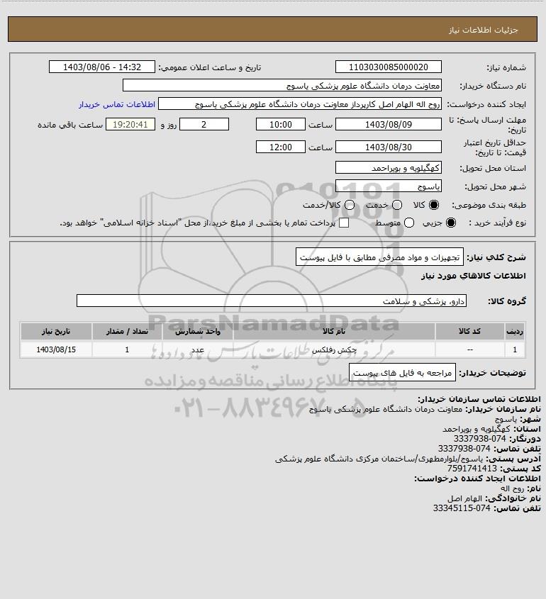 نام دستگاه خریدار:معاونت درمان دانشگاه علوم پزشکی یاسوج