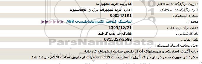 اداره برگزارکننده استعلام: اداره خرید تجهیزات برق و اتوماسیون