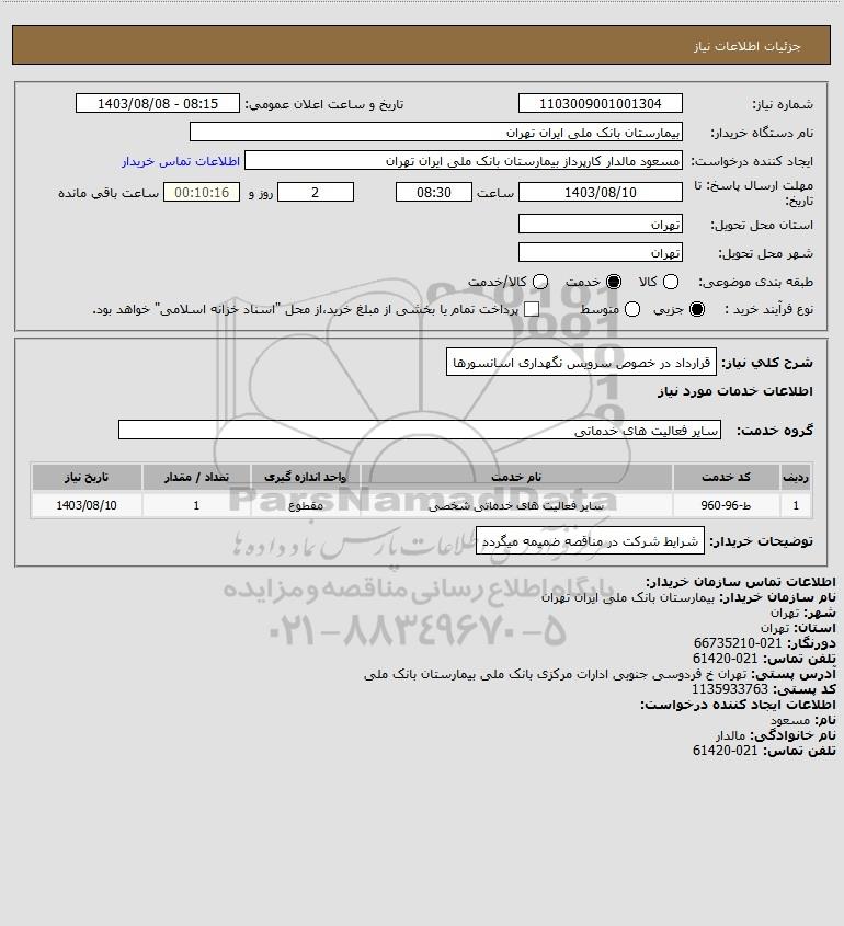 نام سازمان خریدار: بیمارستان بانک ملی ایران تهران