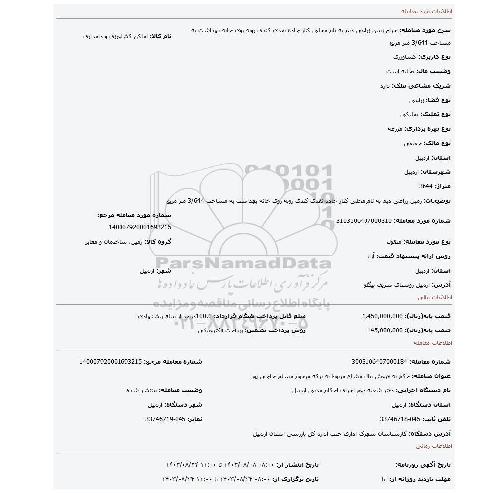 14 مزایده زمین زراعی 9634914 1404/07/10 new not special not payed آذربایجان غربی