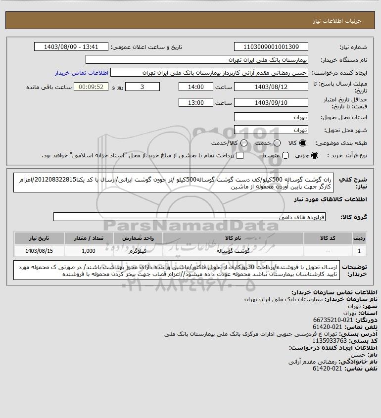 نام دستگاه خریدار:بیمارستان بانک ملی ایران تهران