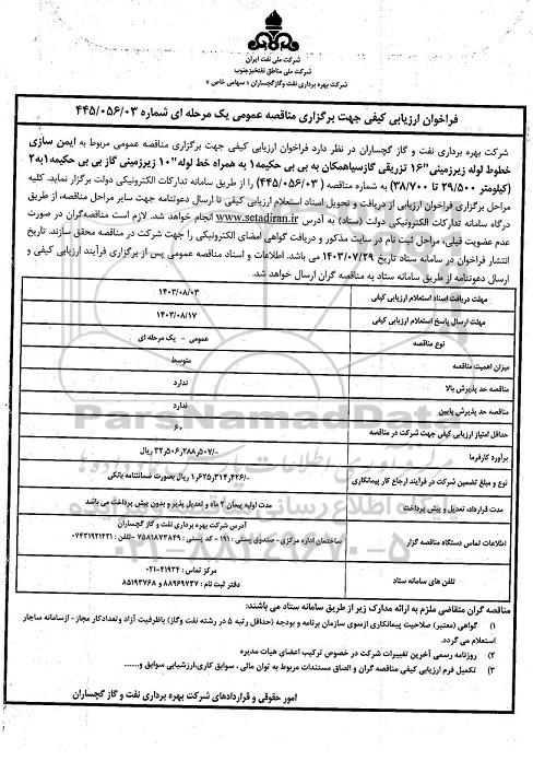 فراخوان ارزیابی کیفی جهت برگزاری مناقصه عمومی یک مرحله ای شماره 445/056/03 ؟