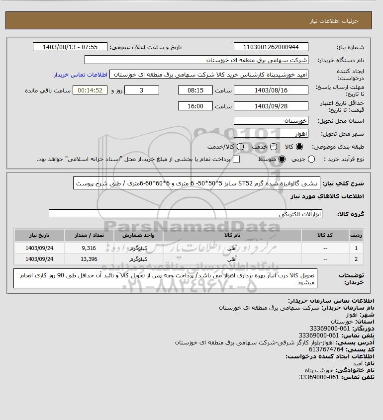 نام سازمان خریدار: شرکت سهامی برق منطقه ای خوزستان