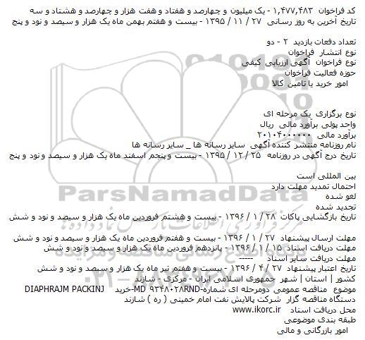 موضوع  مناقصه عمومی دومرحله ای شمارهRND-۹۳۴۸۰۲۸-MD خرید DIAPHRAJM PACKINJ