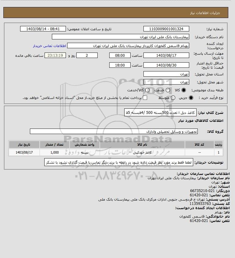 استعلام کاغذ دبل ا تعداد 500بسته a4/ 500بسته a5, استعلام کاغذ دبل ا تعداد 500بسته a4/ 500بسته a5