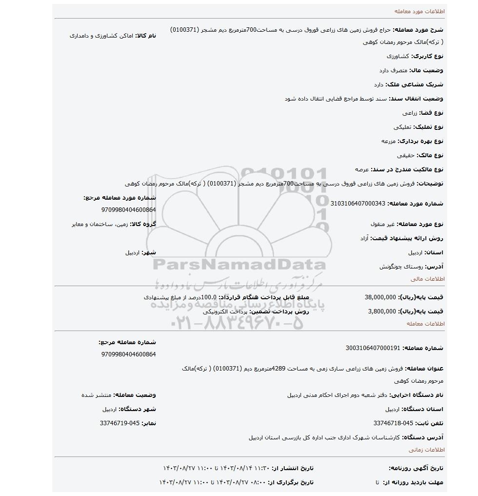 شماره مورد معامله: 3103106407000343 | شماره مورد معامله مرجع: 9709980404600864 | |