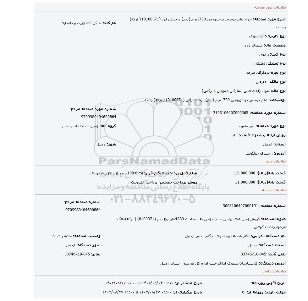 شماره مورد معامله: 3103106407000365 | شماره مورد معامله مرجع: 9709980404600864 | |