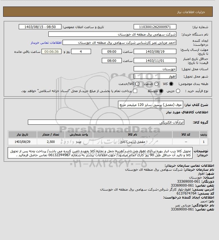 نام سازمان خریدار: شرکت سهامی برق منطقه ای خوزستان