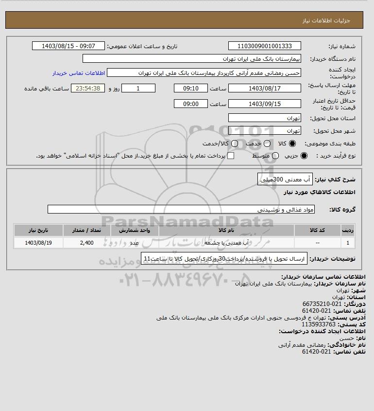 نام دستگاه خریدار:بیمارستان بانک ملی ایران تهران
