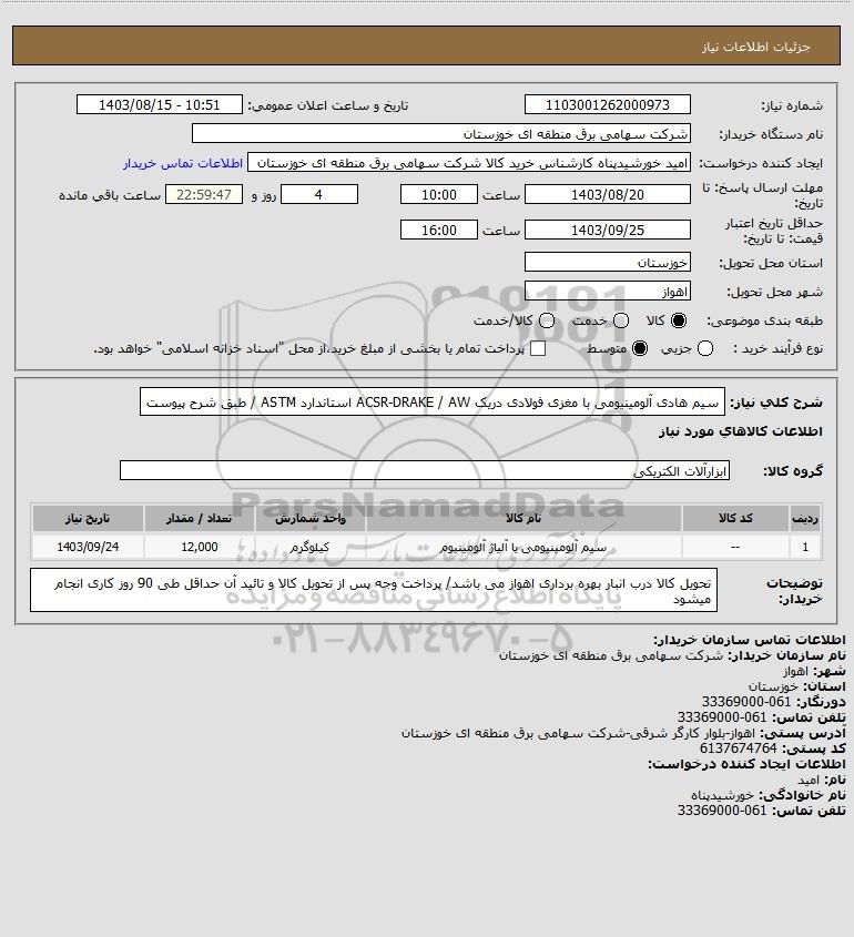 نام سازمان خریدار: شرکت سهامی برق منطقه ای خوزستان