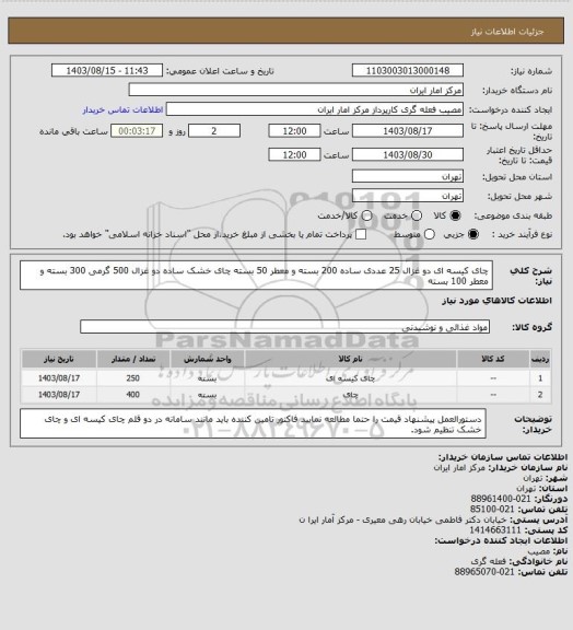 | 2 | -- | چای | بسته | 400 | 1403/08/17 |