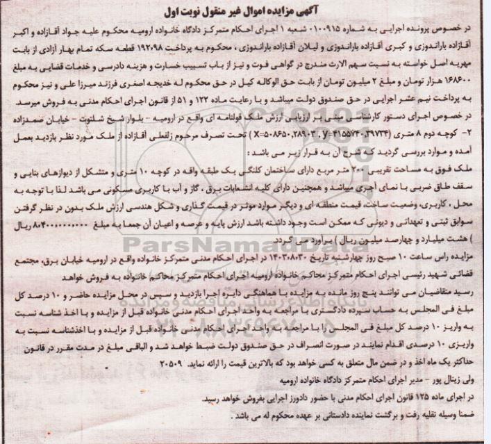 اگهی مزایده اموال غیر منقول نوبت اول