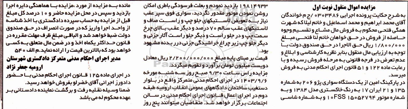 ​​​​​​​اجرای احکام مدنی متمرکز دادگستری شهرستان ارومیه