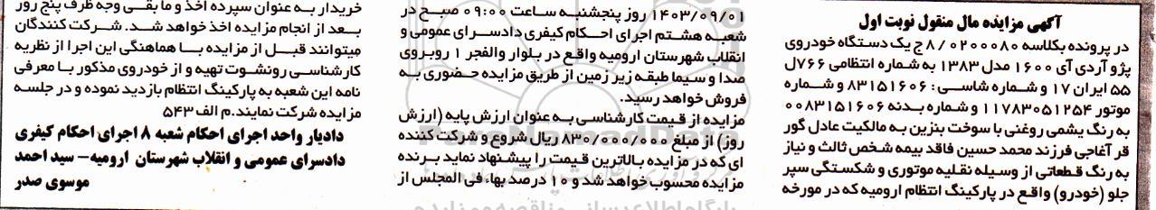 مزایده یک دستگاه خودروی پژو آردی آی 1600 مدل 1383 , مزایده یک دستگاه خودروی پژو آردی آی 1600 مدل 1383