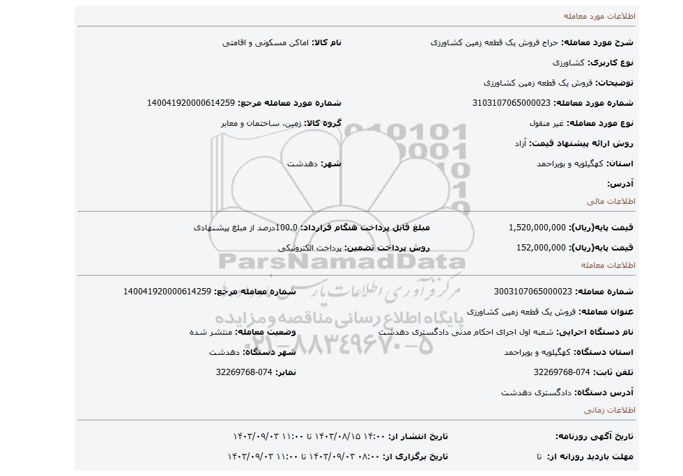 | شماره مورد معامله: 3103107065000023 | شماره مورد معامله مرجع: 140041920000614259 | |