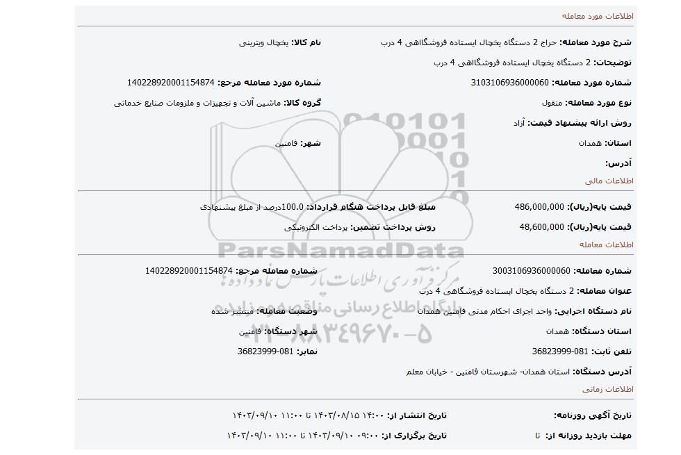 | شماره مورد معامله: 3103106936000060 | شماره مورد معامله مرجع: 140228920001154874 | |