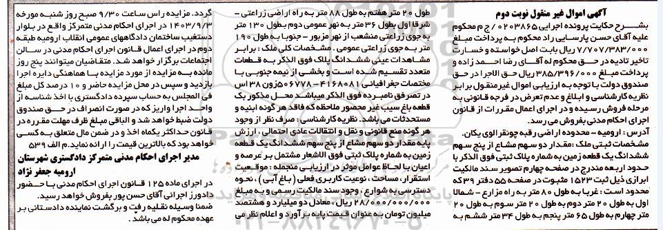 اگهی مزایده اموال غیرمنقول نوبت دوم