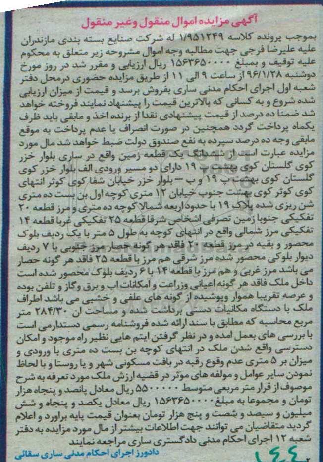 مزایده عمومی مزایده ششدانگ زمین مساحت 284.30متر برگزار میگردد. از کلیه افراد متخصص و شرکتهای واجد شرایط دعوت به عمل میآید تا در این مزایده با کد خبرگزاری پارس نماد : 823485 شرکت نمایند تاریخ شروع مزایده : 1396/01/15 مهلت شرکت در مزایده: تا پایان روز 1396/01/28 مکان برگزاری اموال واگذاری استانهای مازندران و دستهبندیهای مربوط به این حراجی املاک و زمین میباشد.