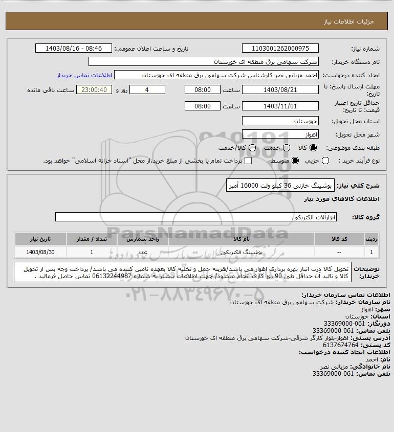 نام دستگاه خریدار:شرکت سهامی برق منطقه ای خوزستان