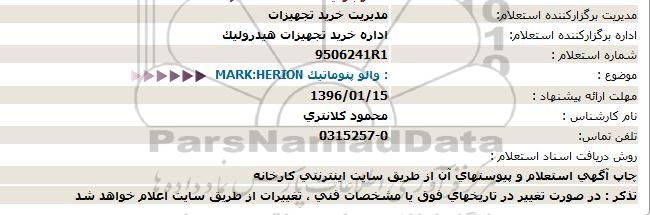 استعلام والو پنوماتیک MARK:HERION- 96.01.15, استعلام ، استعلام والو پنوماتیک MARK:HERION- 96.01.15