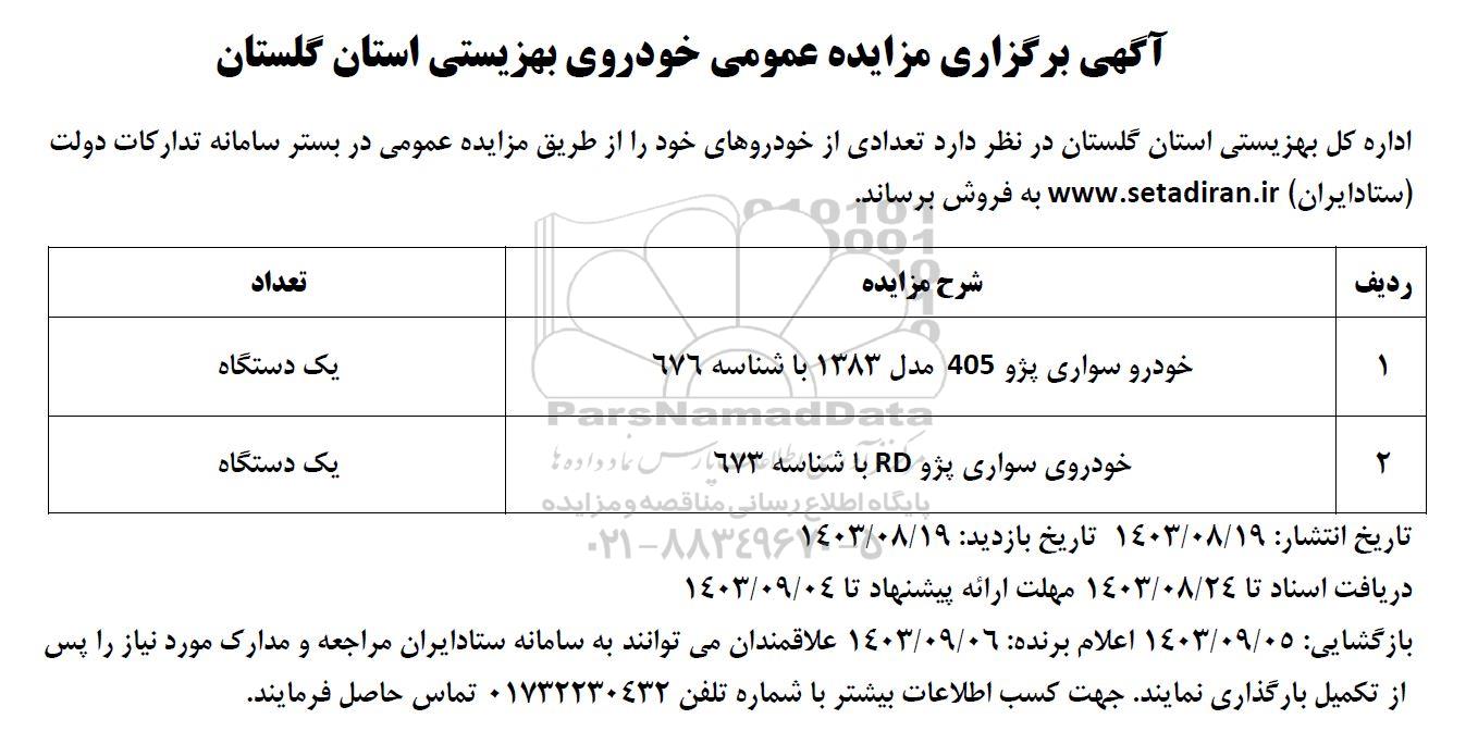 آگهی برگزاری مزایده عمومی خودروی بهزیستی استان گلستان
