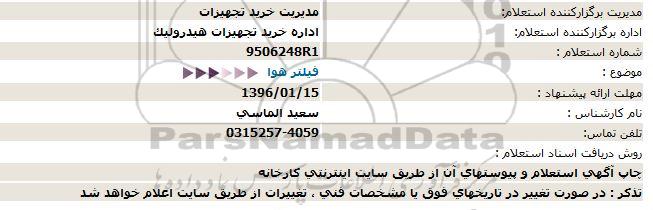 اداره برگزارکننده استعلام: اداره خرید تجهیزات هیدرولیک
