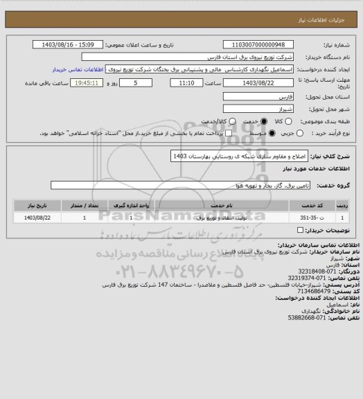 نام سازمان خریدار: شرکت توزیع نیروی برق استان فارس