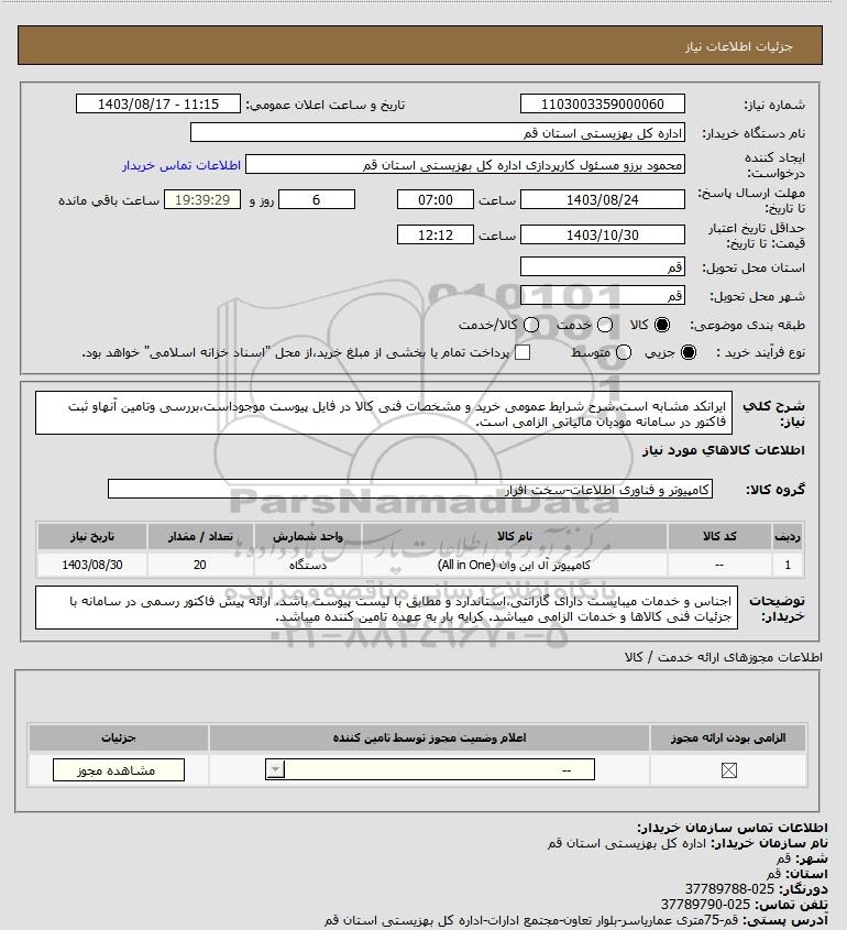 | 1 | -- | کامپیوتر آل این وان (All in One) | دستگاه | 20 | 1403/08/30 |
