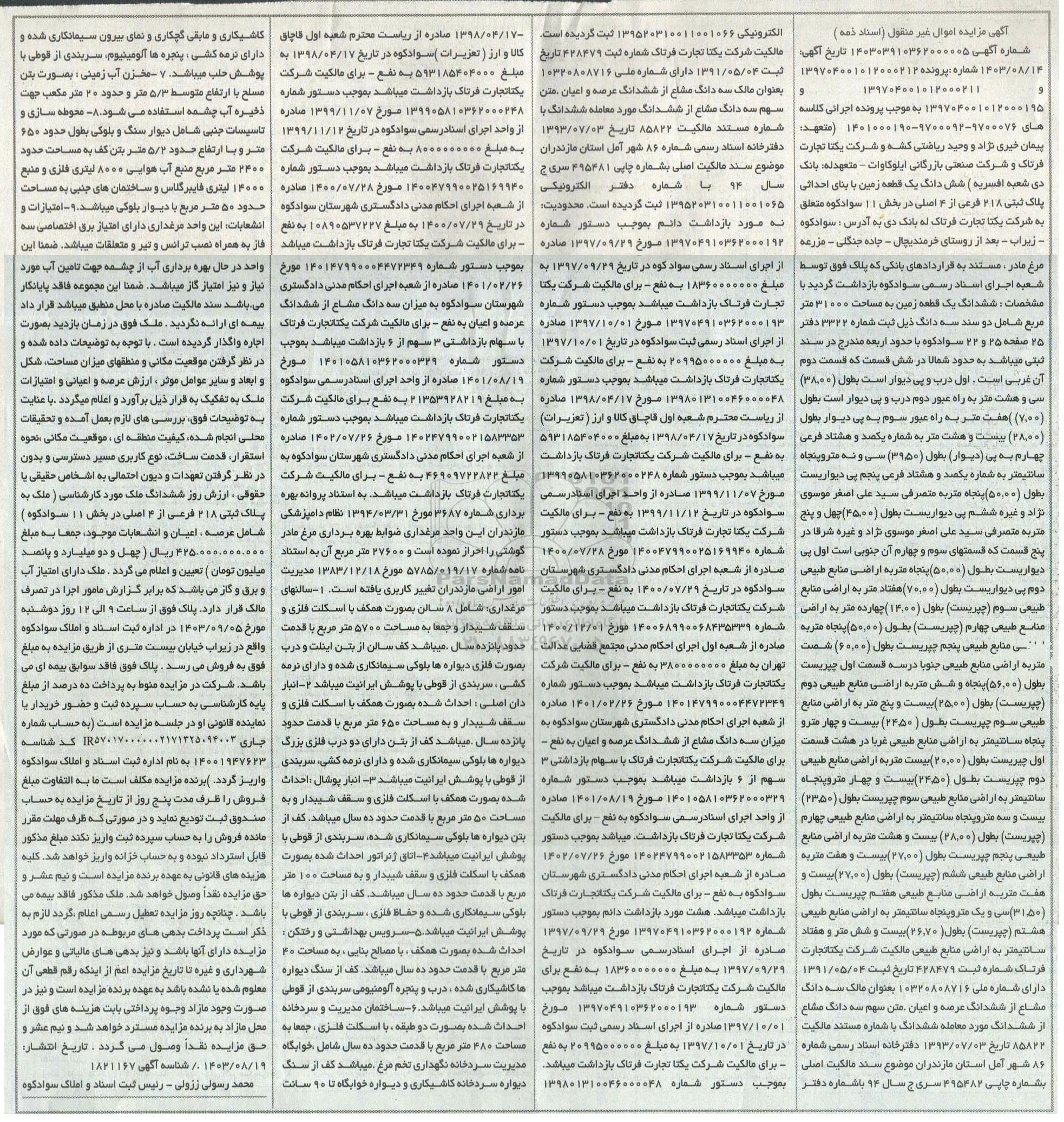اگهی مزایده اموال غیر منقول