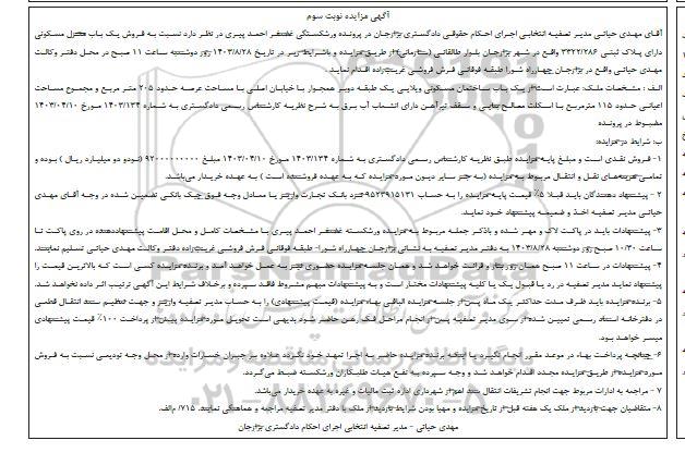 آگهی مزایده نوبت سوم