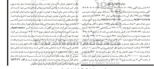 مزایده از ساعت 9 الی 12 روز 1شنبه مورخ 1403.9.4