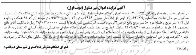 مزایده ششدانگ یک باب ساختمان به شماره پلاک 97 فرعی از 48 اصلی, مزایده ششدانگ یک باب ساختمان به شماره پلاک 97 فرعی از 48 اصلی