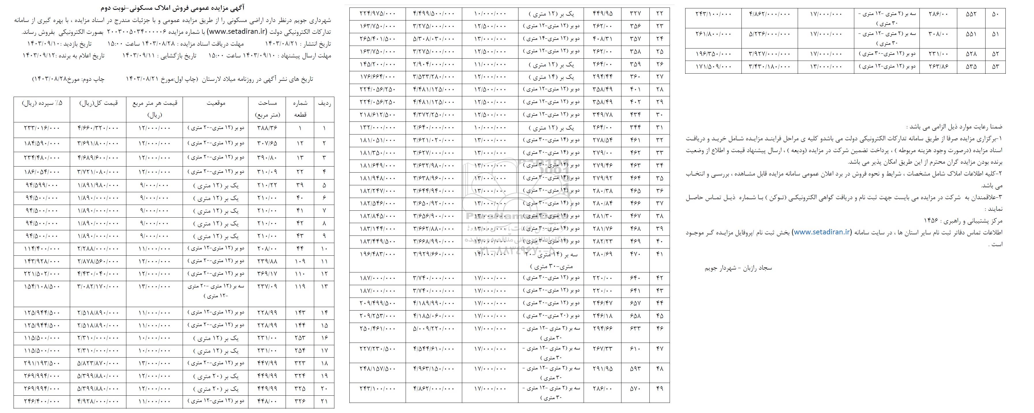 آگهی مزایده عمومی فروش املاک مسکونی - نوبت دوم