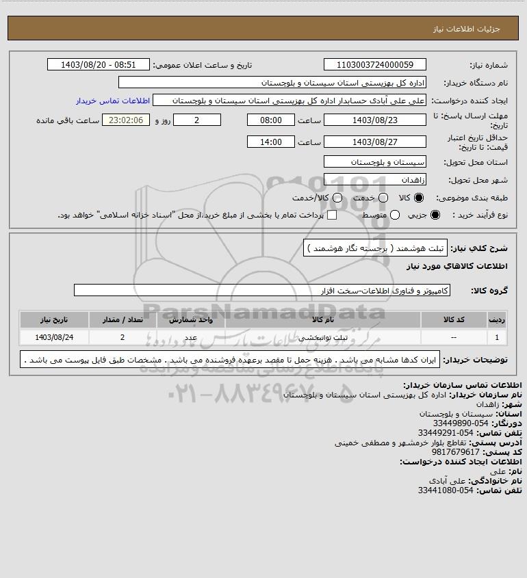 شرح کلی نیاز: تبلت هوشمند ( برجسته نگار هوشمند )