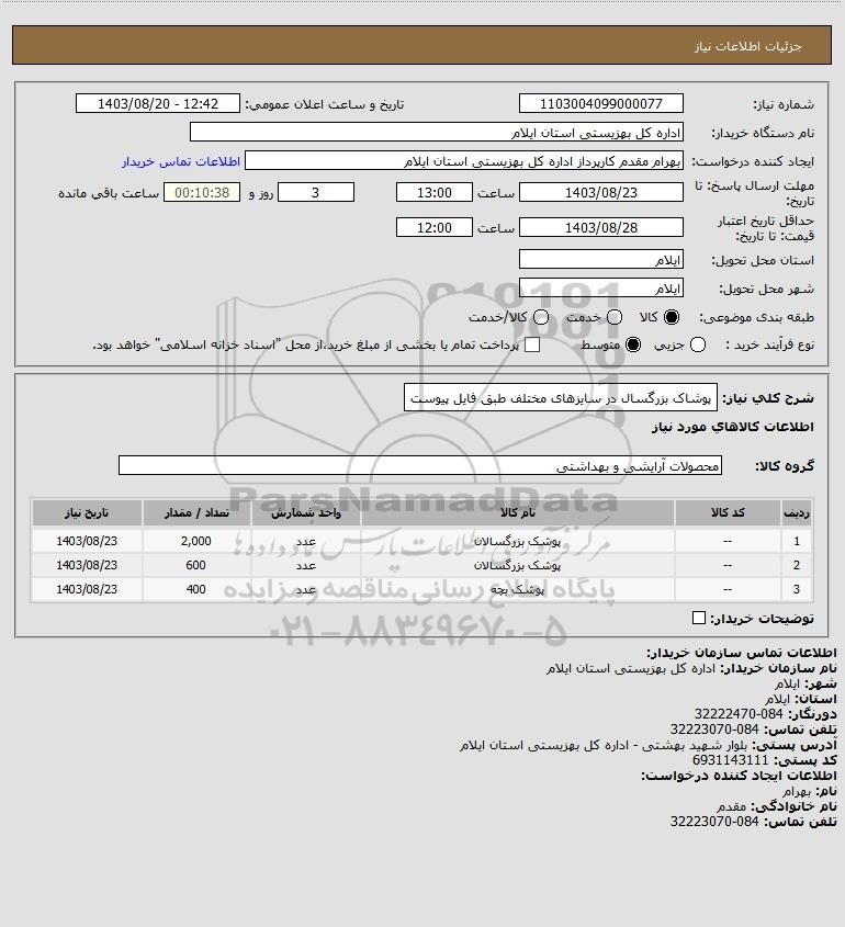 | 2 | -- | پوشک بزرگسالان | عدد | 600 | 1403/08/23 |