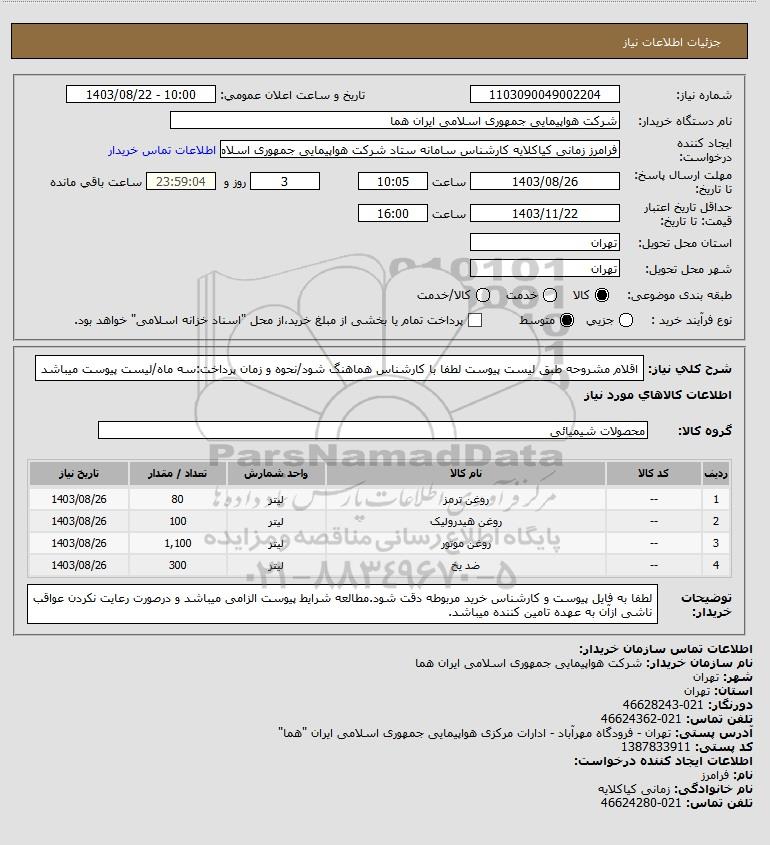 نام دستگاه خریدار:شرکت هواپیمایی جمهوری اسلامی ایران هما