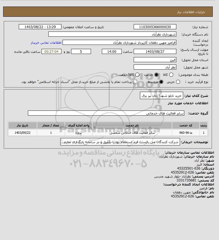 شرح کلی نیاز: خرید تابلو شهدا روی تیر برق