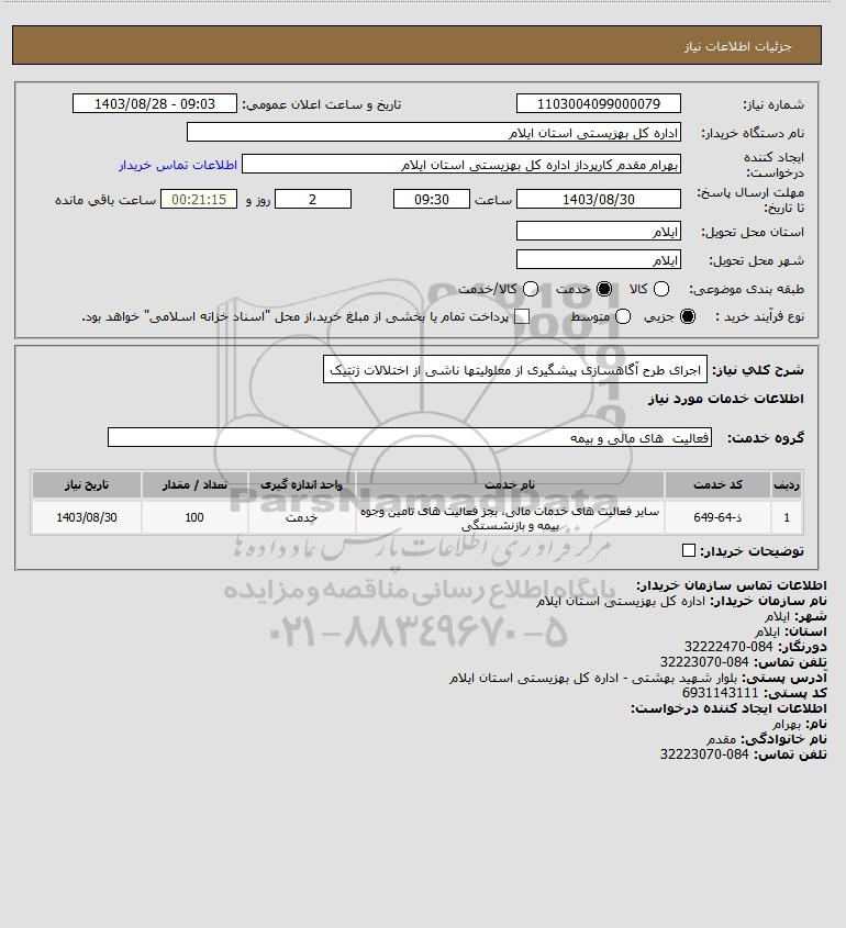 شرح کلی نیاز: اجرای طرح آگاهسازی پیشگیری از معلولیتها ناشی از اختلالات ژنتیک
