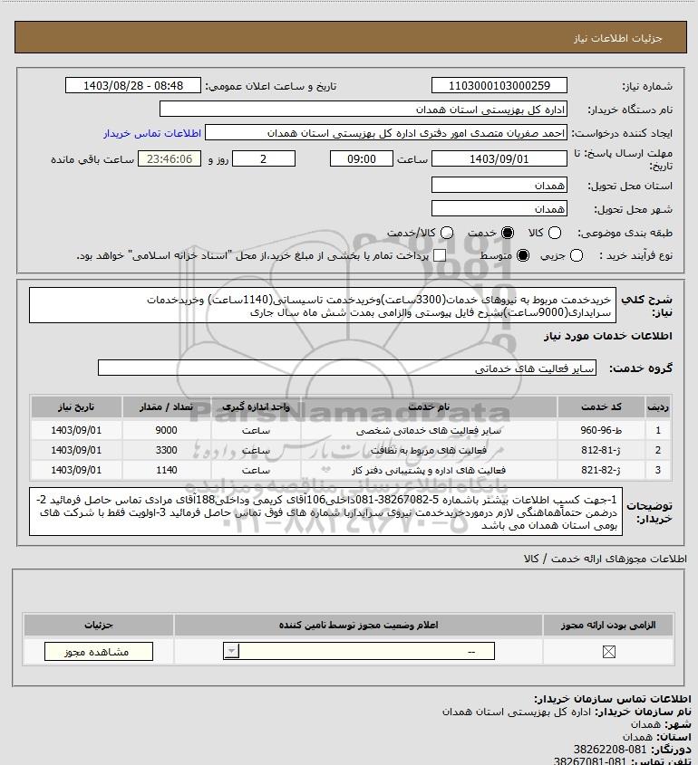 شماره نیاز: 1103000103000259