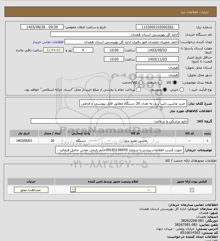 نام دستگاه خریدار:اداره کل بهزیستی استان همدان