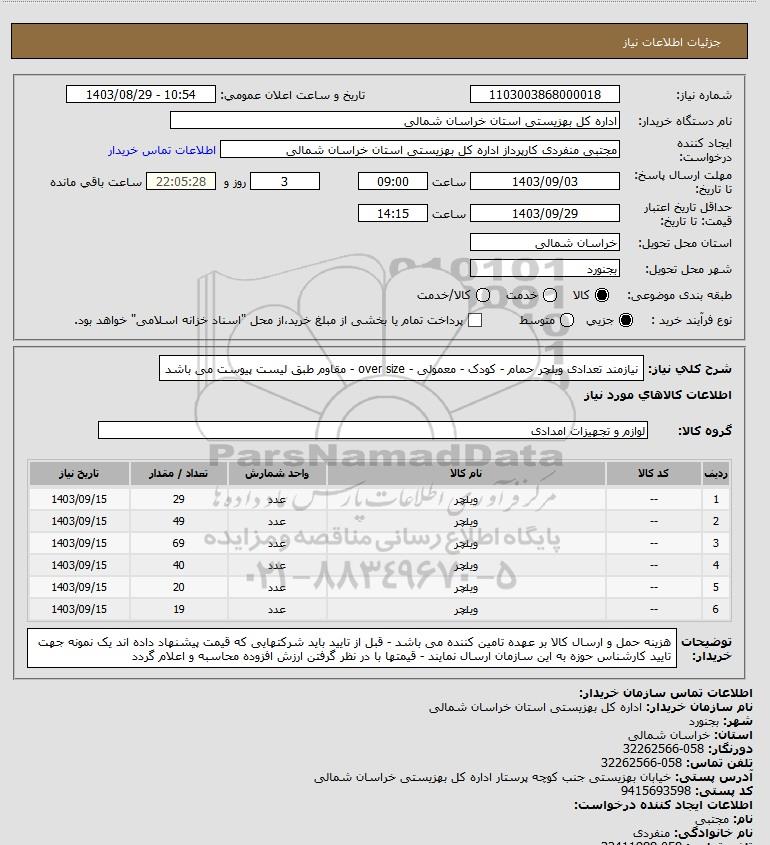 نام دستگاه خریدار:اداره کل بهزیستی استان خراسان شمالی