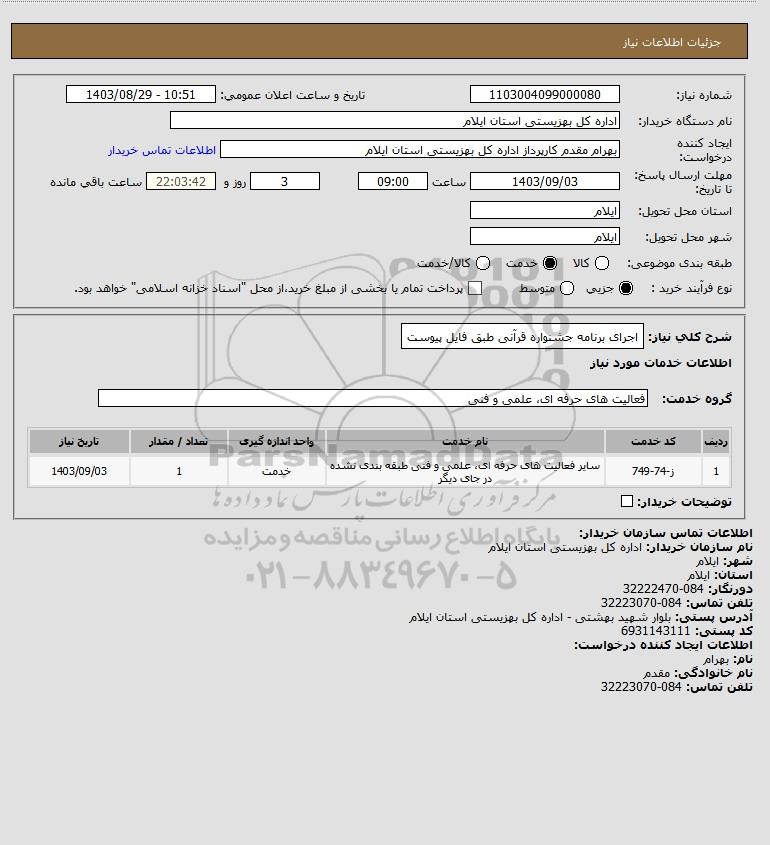 استعلام اجرای برنامه جشنواره قرآنی طبق فایل پیوست, استعلام اجرای برنامه جشنواره قرآنی طبق فایل پیوست