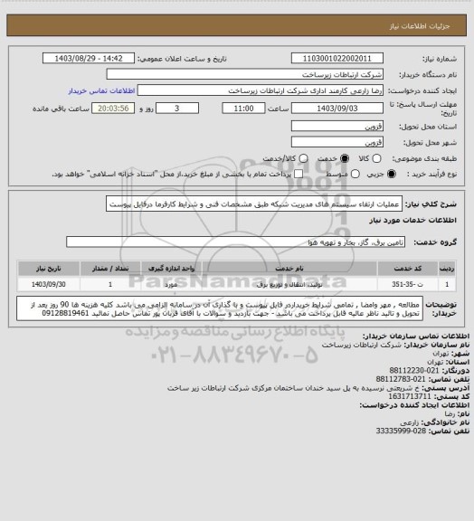 نام دستگاه خریدار:شرکت ارتباطات زیرساخت