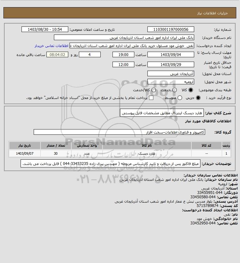 استعلام هارد دیسک اینترنال مطابق مشخصات فایل پیوستی, استعلام هارد دیسک اینترنال مطابق مشخصات فایل پیوستی