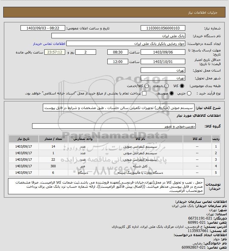 نام دستگاه خریدار:بانک ملی ایران